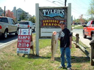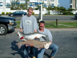 Zack Stryjewski, 11 years old of Abingdon (MD), with a 40" 26.5 lb. rockfish, and Joe Stryjewski with a 36.5" 20.5 lb. rockfish. ![]()