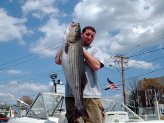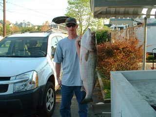 Irvin Drummond of Ellicott City (MD) with a 44.5" 33.5 lb. monster rockfish. ![]()