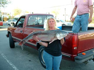 Raymond Carter with a 49.25" 38 lb. huge striper. ![]()