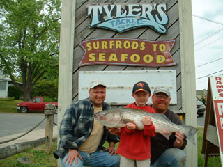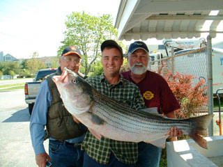 William Rothe Jr., Roland Lloyd, and 6 year old Hunter Huxoll with a 42" 28 lb. striper. ![]()