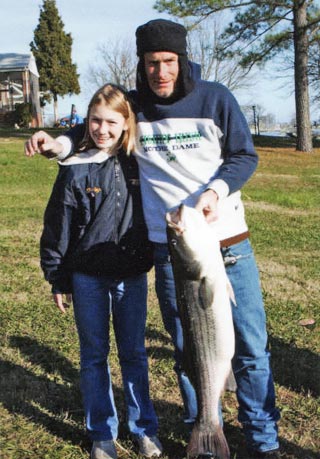 Tim Harless and Tim Jr. with 43" 27 lb. and 41.5" 25 lb. stripers. ![]()