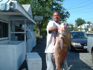 Bruce Ewell with a 35 lb. 44 1/2" long rockfish. ![]()