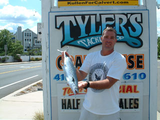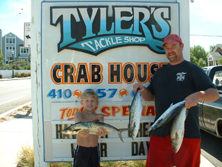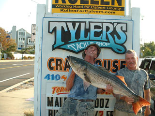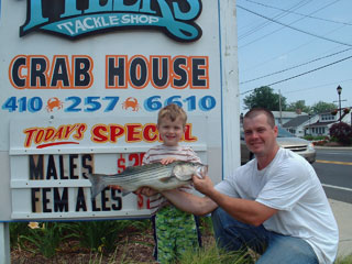 Here's Chris Wallace and his 4 year old son William with his first ever rockfish, 29 inches long and weighing 8 pounds! Here's Keith Livesay of Sykesville and Bill Arnney of Gettysburg (PA) with rockfish of 32 1/2 and 45 1/2 inches they caught Opening Day.