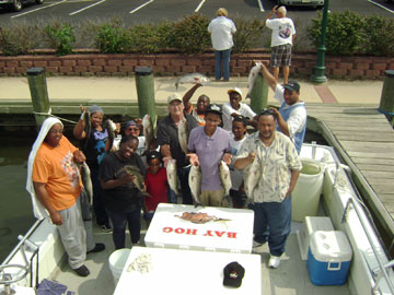 Fun day fishing on the Chesapeake Bay! Persons in photo are: Capt George Klein of Tyler's Tackle, Lee Ramey, Eric Ramey, Johnny Smith, Lucretia Smith, Lydell Tyler, Adrienne Grier, Shawn Grier, Xavier Harris, Carlo Hurley, Demetrius Henson and Sean Sutton.