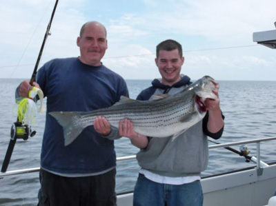 Dan and Gary Goetz caught this nice 37 inch Rockfish on 5/10/13. Thanks to Captain George for all the tips, they seem to be working!