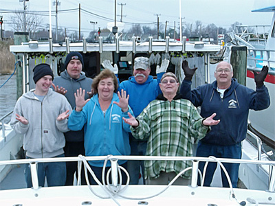 Sad day aboard the Bay Hog on Wednesday, December 4th with Nathan, Chris, Cathy, William, Stewart and Captain George -- NO FISH!