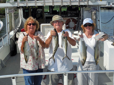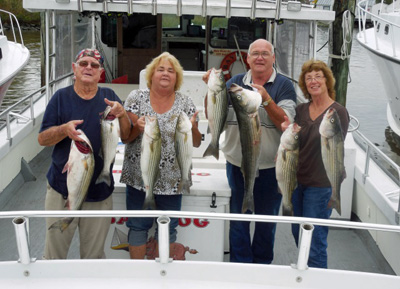 Good day on the bay. Left to right: Stewart King, Cathy King (George's sister) , Capt George and wife Ann.